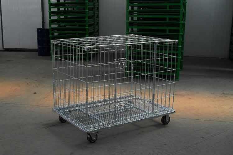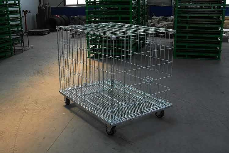 带盖美固笼的结构设计是为了随时存取货物方便,并且在堆叠存储时,可以随时打开小门存入或取出物品,免除翻仓的麻烦;配合叉车、升降机、吊车等设备可进行作业,大大的节省了存储空间。带盖美固笼运输便捷、且能够重复使用,并能够降低仓储企业的人力消耗及包装成本。