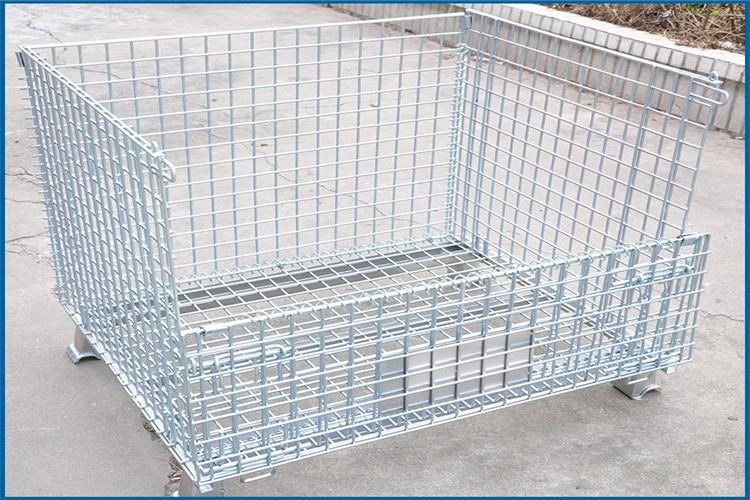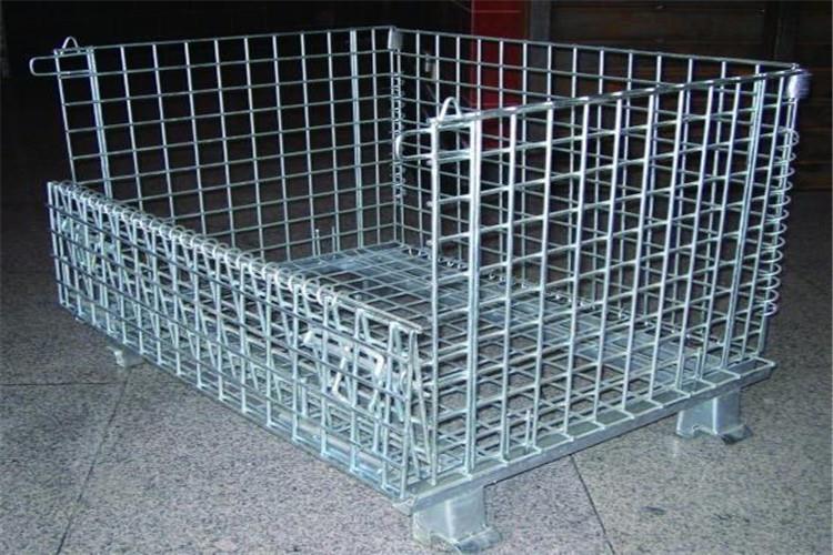 托盘仓储笼采用钢材经冷轧硬化焊接而成,强度高,装载能力大;规格统一,容量固定,存放货物一目了然,易于库存清点;表面镀锌,美观,使用寿命长;采用国际标准,可与集装箱配套使用,提高空间利用率;可互相堆叠四层高,实现立体化存储;表面环保处理,卫生防御、周转、存放回收均不污染环境;配合叉车、地牛、升降机、吊车等设备可进行作业;折叠式结构,回收成本低,是木质包装箱的替代产品;底部可安装轮子,工厂内部周转方便。
